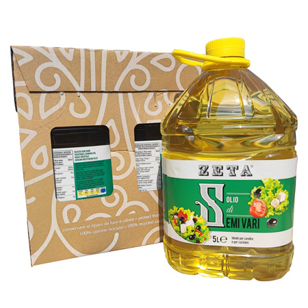 Olio di Semi Vari Zeta questa particolare varietà di olio, prodotto spremendo semi di diversa provenienza (Soia, Girasole – Colza, Girasole); dalle gradi proprietà che variano in base ai semi utilizzati. Delicato e leggero, grazie alla sapiente ricetta dei componenti, è ideale per condire i tuoi piatti.